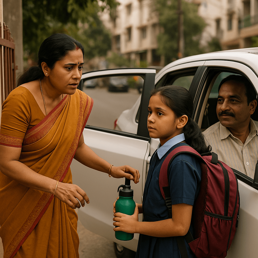 Meera looked down the lane again. No familiar yellow van. Her heart began to thump unevenly. She called the driver, but the line went unanswered. A knot formed in her stomach, an irrational sense of unease she tried to brush off.